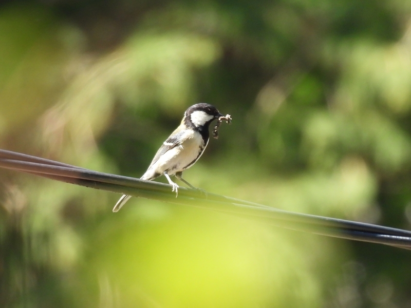 そんなところに出てきてくれるシジュウカラ。何かくわえてるね。虫っぽい。